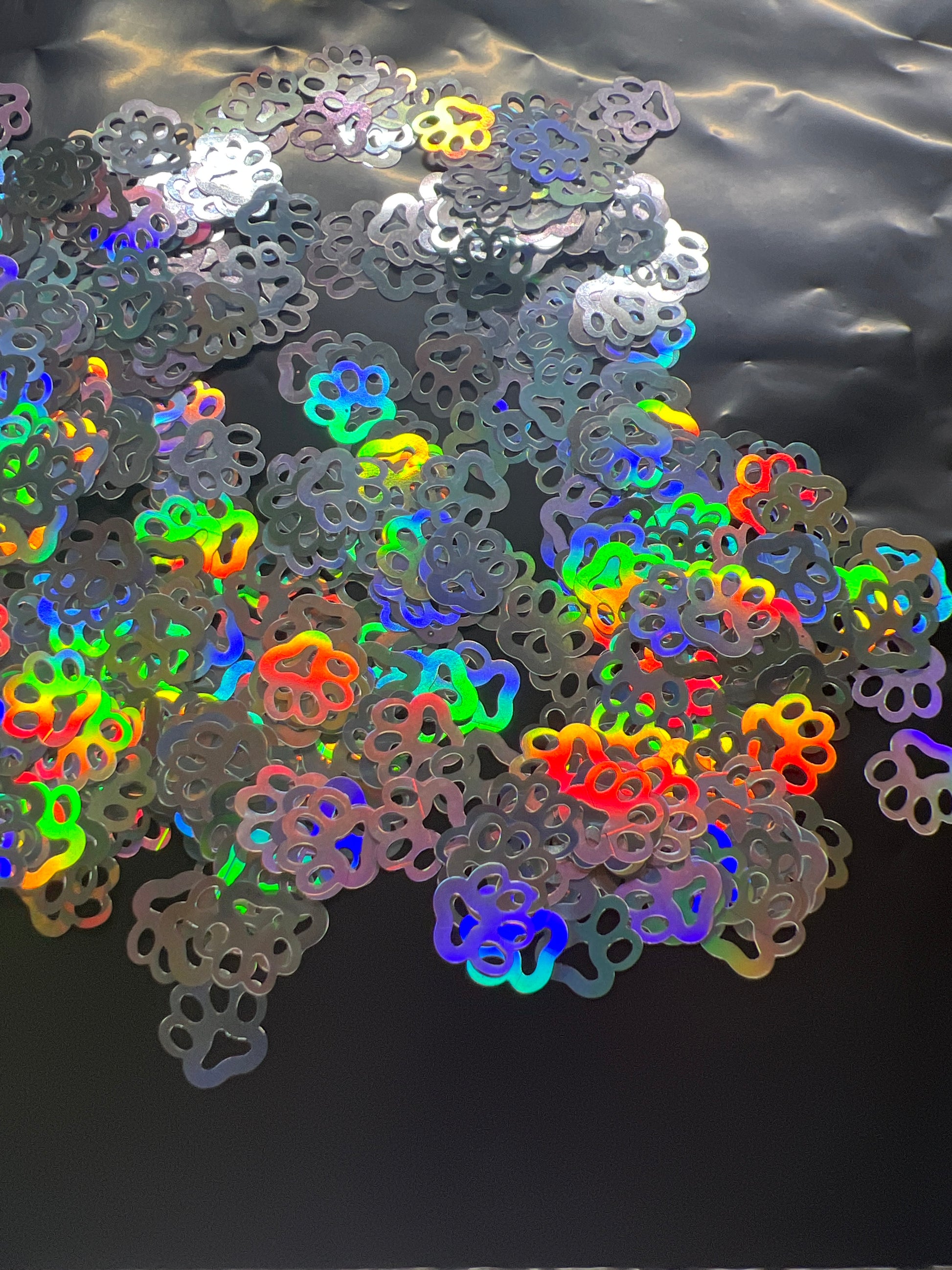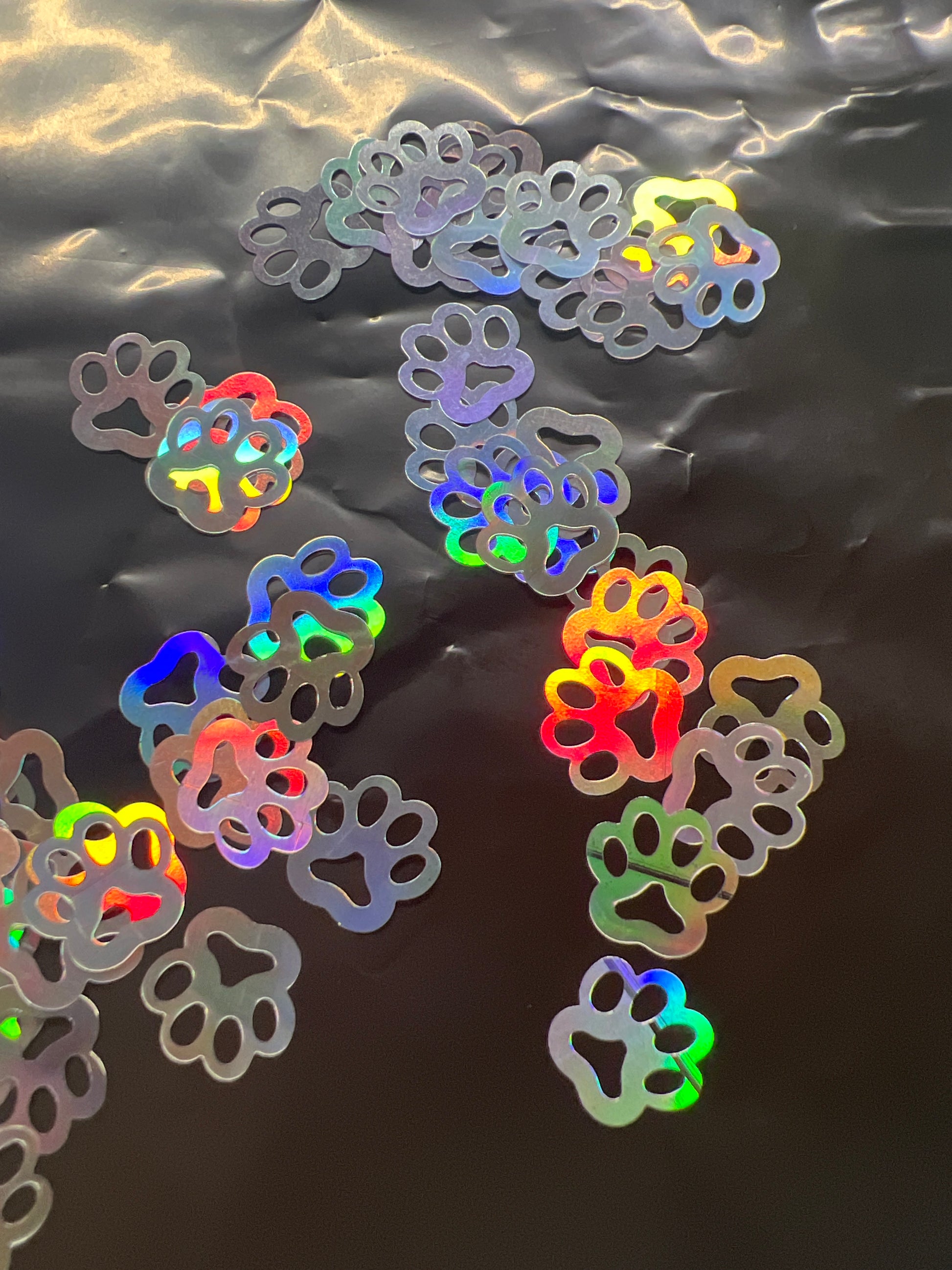 Shaped Glitter Silver Holographic Paw Prints